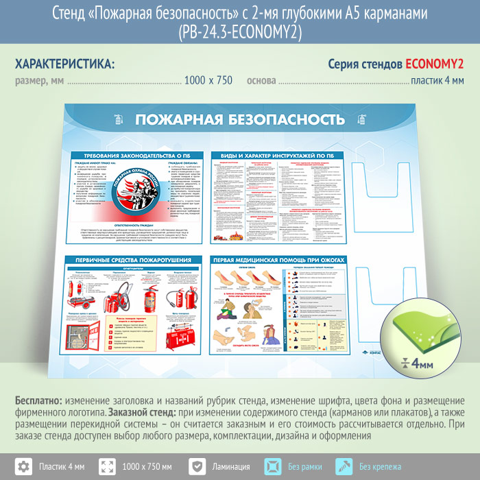 Стенд «Пожарная безопасность» с 2-мя глубокими А5 карманами (PB-24.3-ECONOMY2) в Москве купить
