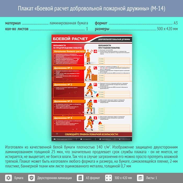 Плакат «Боевой расчет добровольной пожарной дружины» (М-14, ламинированная бумага, А3, 1 лист) в Москве купить