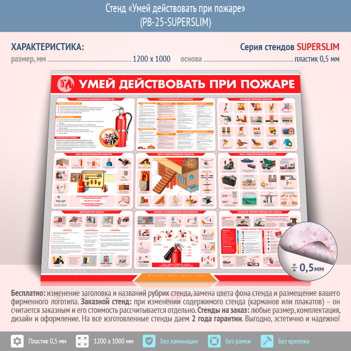 Стенд «Умей действовать при пожаре» (PB-25-SUPERSLIM) в Москве купить