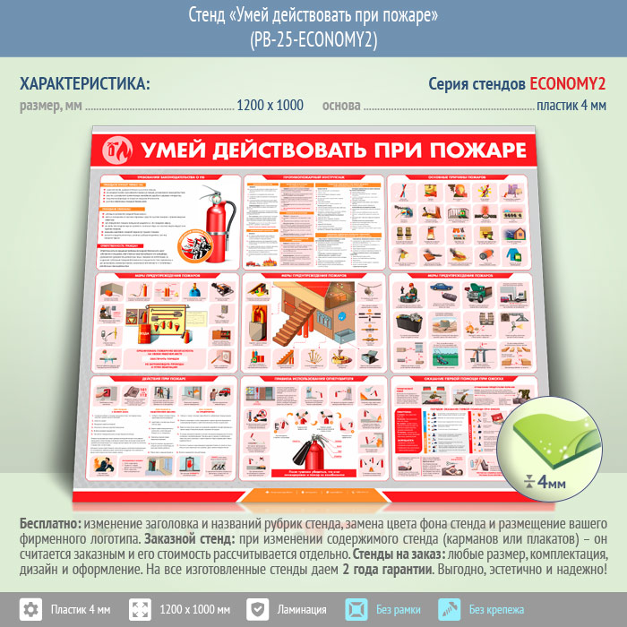 Стенд «Умей действовать при пожаре» (PB-25-ECONOMY2) в Москве купить