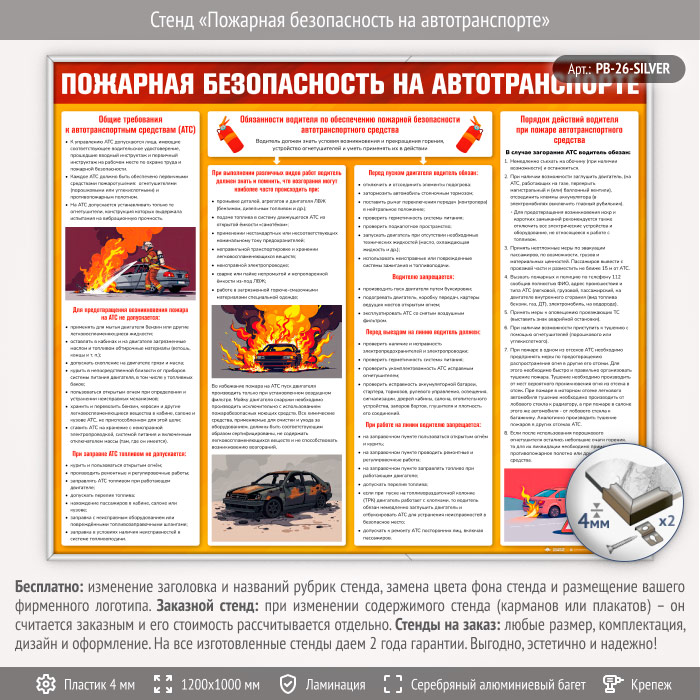 Стенд «Пожарная безопасность на автотранспорте» (PB-26-SILVER) в Москве купить