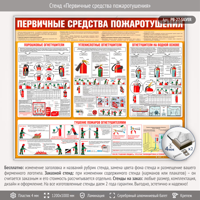 Стенд «Первичные средства пожаротушения» (PB-27-SILVER) в Москве купить