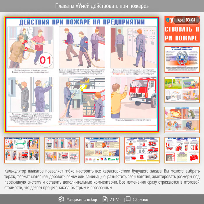 Плакаты «Умей действовать при пожаре» (ВЗ-04, 10 листов) в Москве купить