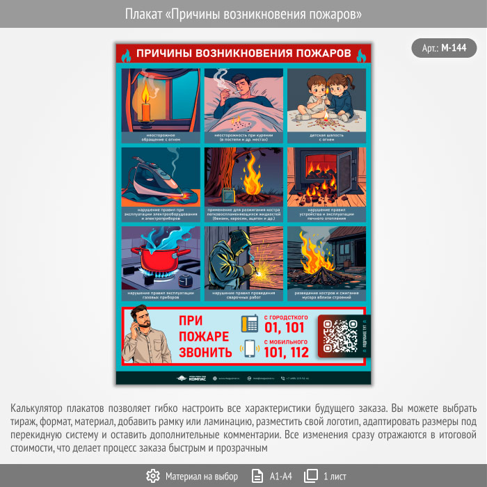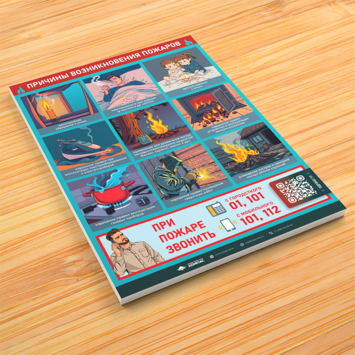 Плакат «Причины возникновения пожаров» с QR (М-144, 1 лист) в Москве купить