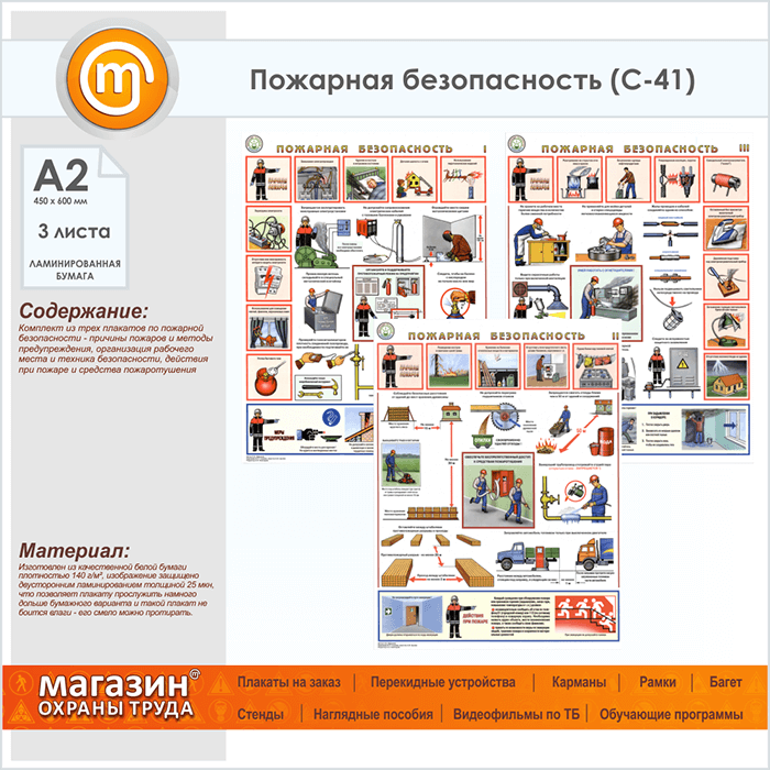 Плакаты «Пожарная безопасность» (С-41, ламинированная бумага, А2, 3 листа) в Москве купить