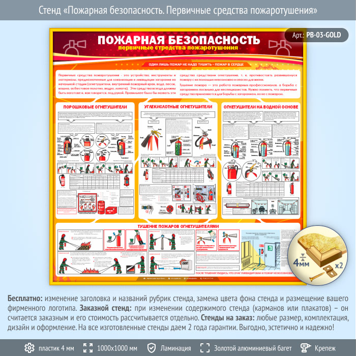 Стенд «Пожарная безопасность. Первичные средства пожаротушения» (PB-03-GOLD) в Москве купить
