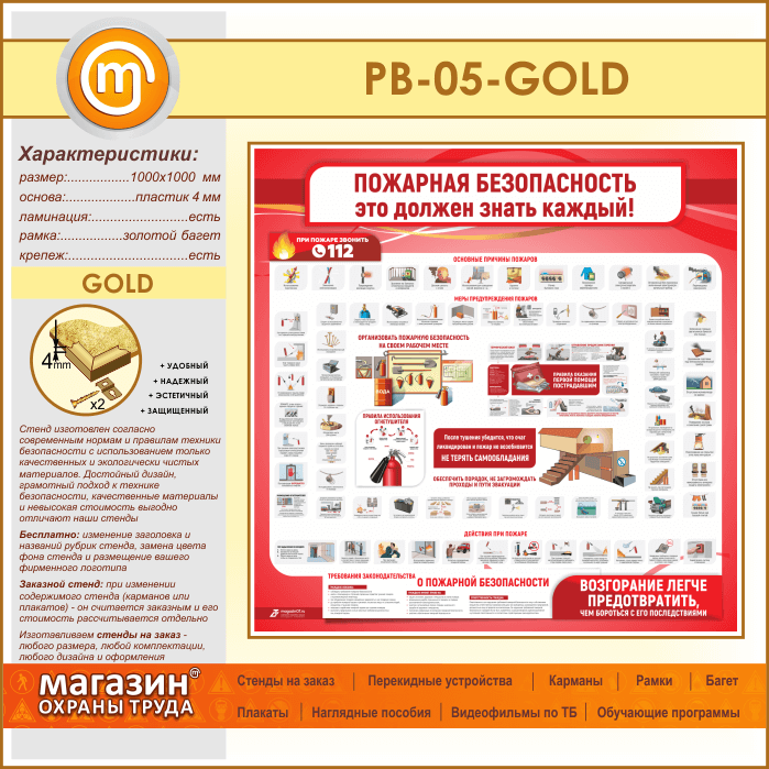 Стенд «Пожарная безопасность. Это должен знать каждый» (PB-05-GOLD) в Москве купить
