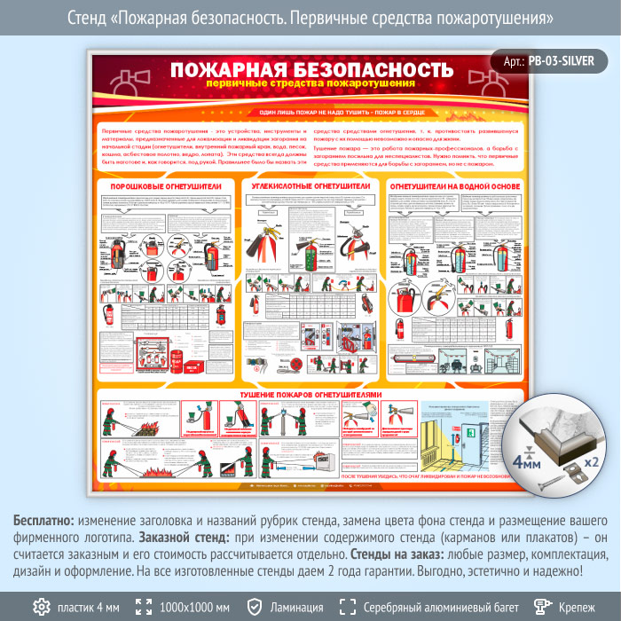Стенд «Пожарная безопасность. Первичные средства пожаротушения» (PB-03-SILVER) в Москве купить