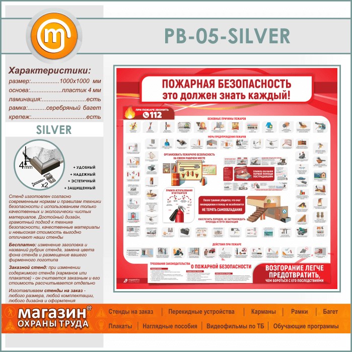 Стенд «Пожарная безопасность. Это должен знать каждый» (PB-05-SILVER) в Москве купить