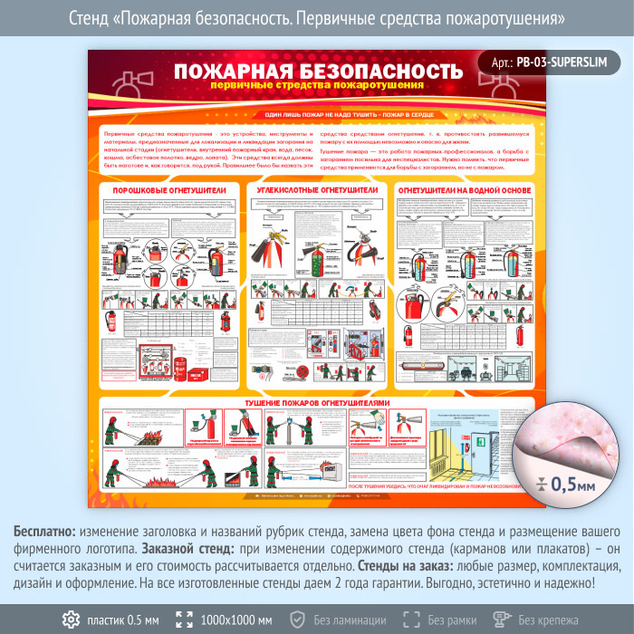 Стенд «Пожарная безопасность. Первичные средства пожаротушения» (PB-03-SUPERSLIM) в Москве купить