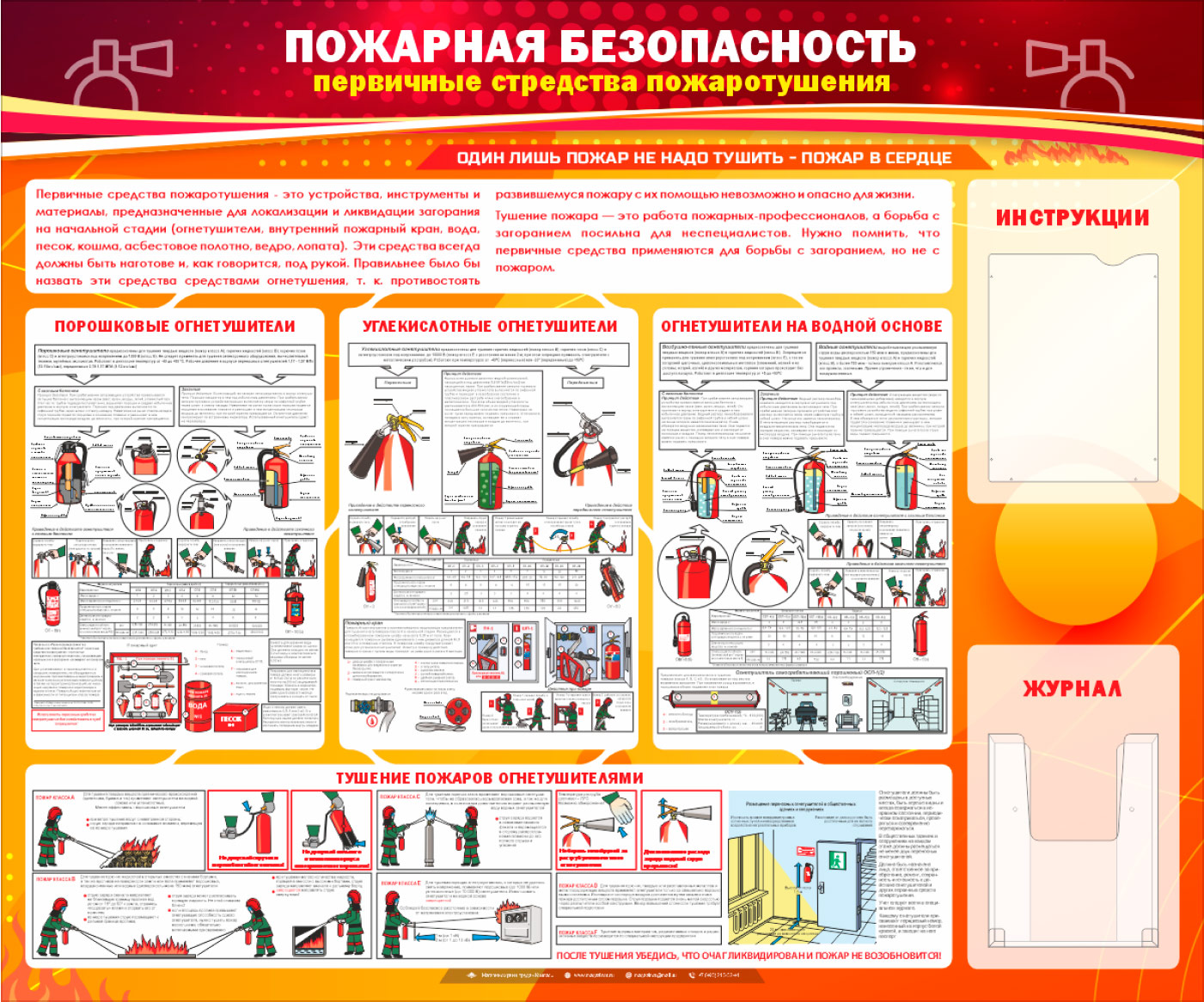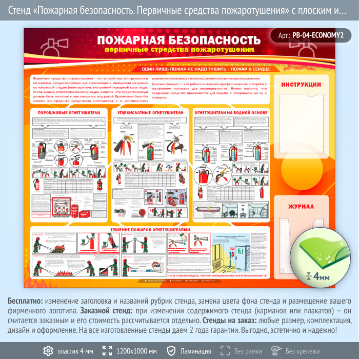 Стенд «Пожарная безопасность. Первичные средства пожаротушения» с плоским и объемным карманами (PB-04-ECONOMY2) в Москве купить