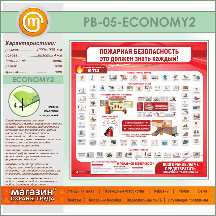 Стенд «Пожарная безопасность. Это должен знать каждый» (PB-05-ECONOMY2) в Москве купить