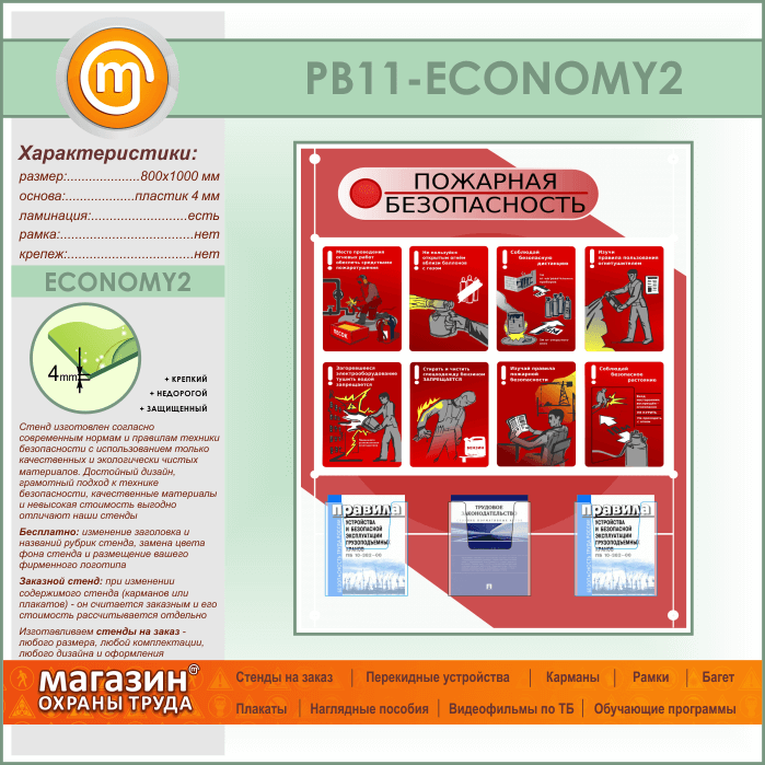 Стенд «Стенд пожарная безопасность в строительстве» с 3 объемными карманами (PB-11-ECONOMY2) в Москве купить