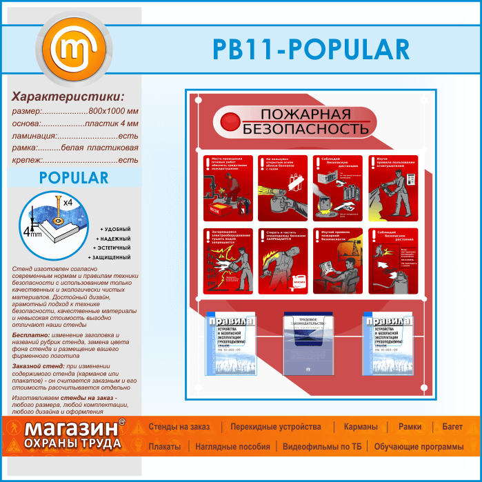 Стенд «Стенд пожарная безопасность в строительстве» с 3 объемными карманами (PB-11-POPULAR) в Москве купить