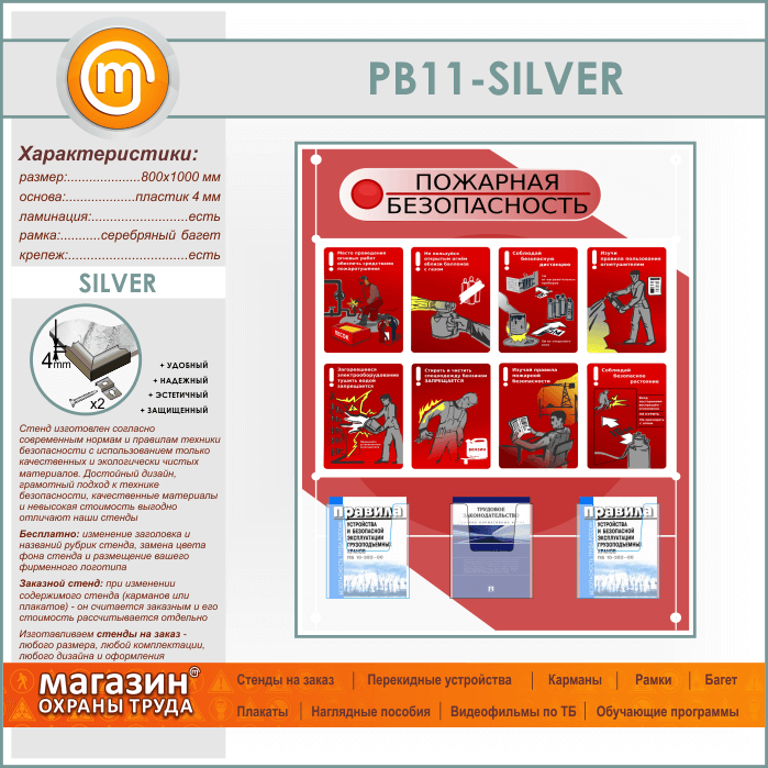 Стенд «Стенд пожарная безопасность в строительстве» с 3 объемными карманами (PB-11-SILVER) в Москве купить