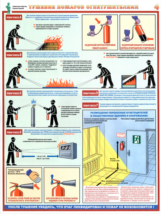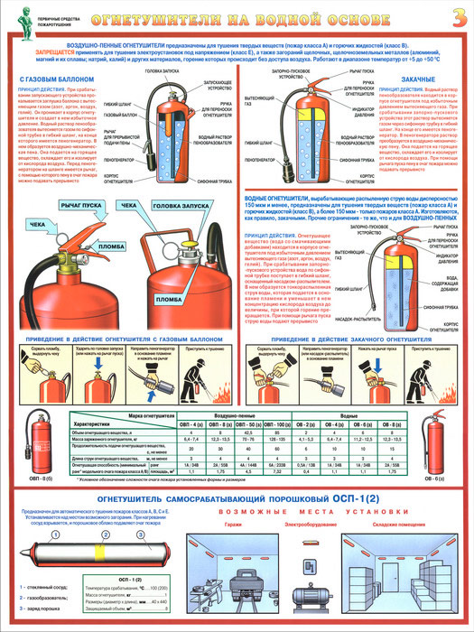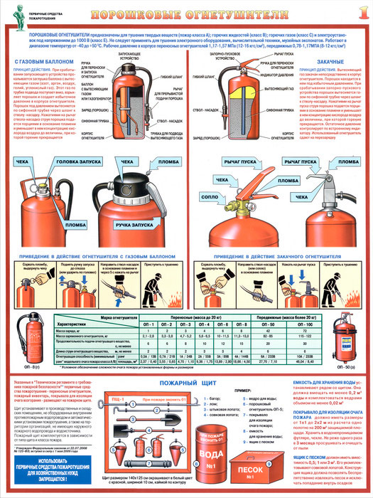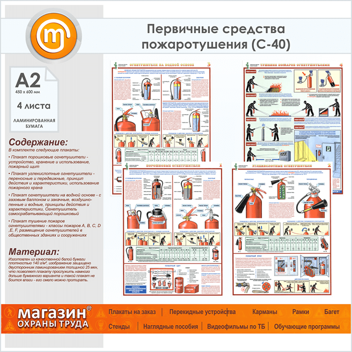 Плакаты «Первичные средства пожаротушения» (С-40, ламинированная бумага, А2, 4 листа) в Москве купить