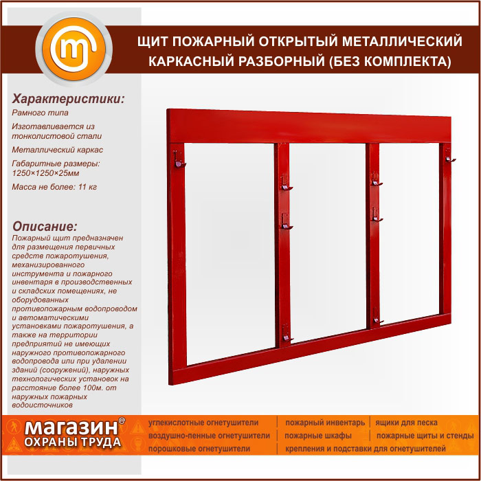 Щит пожарный открытый металлический каркасный разборный (без комплекта) в Москве купить