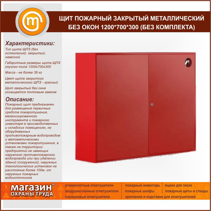 Щит пожарный закрытый металлический без окон 1200*700*300 (без комплекта) в Москве купить