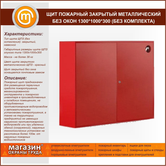 Щит пожарный закрытый металлический без окон 1300*1000*300 (без комплекта) в Москве купить