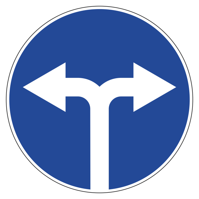 Дорожный знак 4.1.6 «Движение направо или налево» (металл 0,8 мм, III типоразмер: диаметр 900 мм, С/О пленка: тип А инженерная) в Москве купить