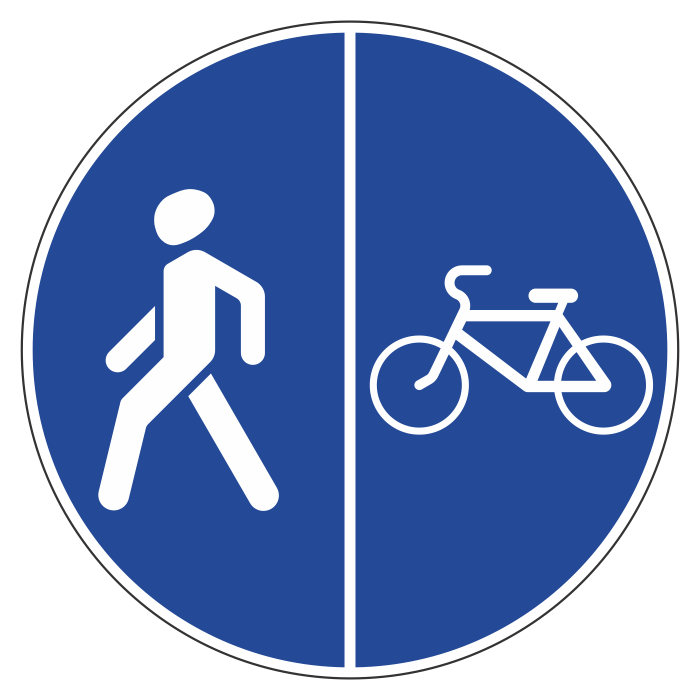 Дорожный знак 4.5.5 «Пешеходная и велосипедная дорожка с разделением движения» (металл 0,8 мм, II типоразмер: диаметр 700 мм, С/О пленка: тип А инженерная) в Москве купить