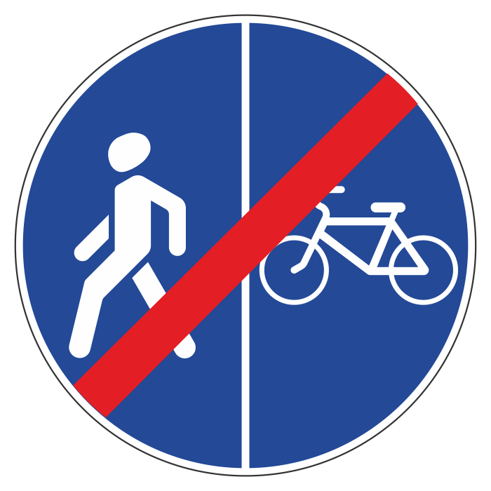 Дорожный знак 4.5.7 «Конец пешеходной и велосипедной дорожки с разделением движения» (металл 0,8 мм, II типоразмер: диаметр 700 мм, С/О пленка: тип В алмазная) в Москве купить
