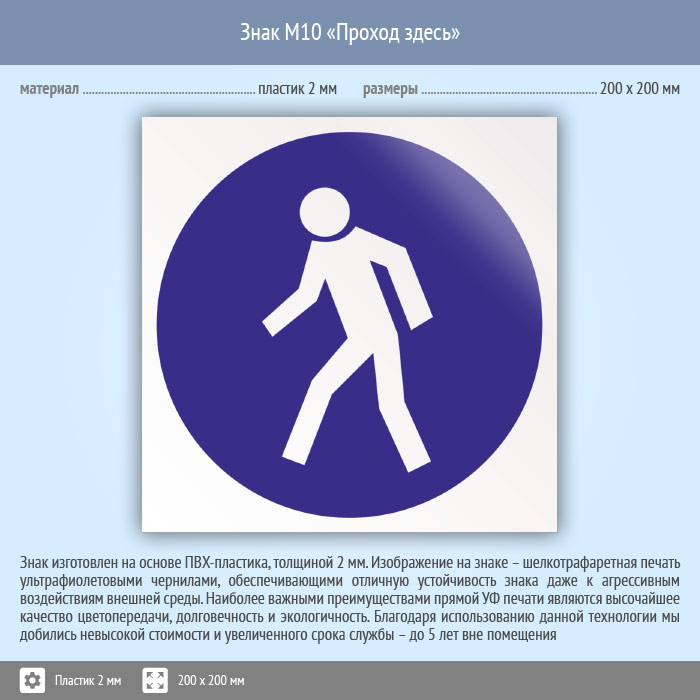 Знак M10 «Проход здесь» (пластик, 200х200 мм) в Москве купить