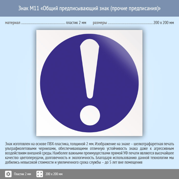 Знак M11 «Общий предписывающий знак (прочие предписания)» (пластик, 200х200 мм) в Москве купить