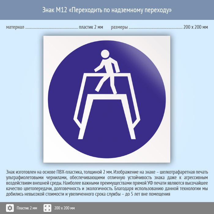 Знак M12 «Переходить по надземному переходу» (пластик, 200х200 мм) в Москве купить