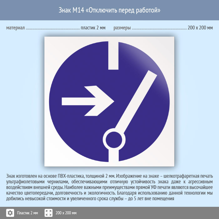 Знак M14 «Отключить перед работой» (пластик, 200х200 мм) в Москве купить