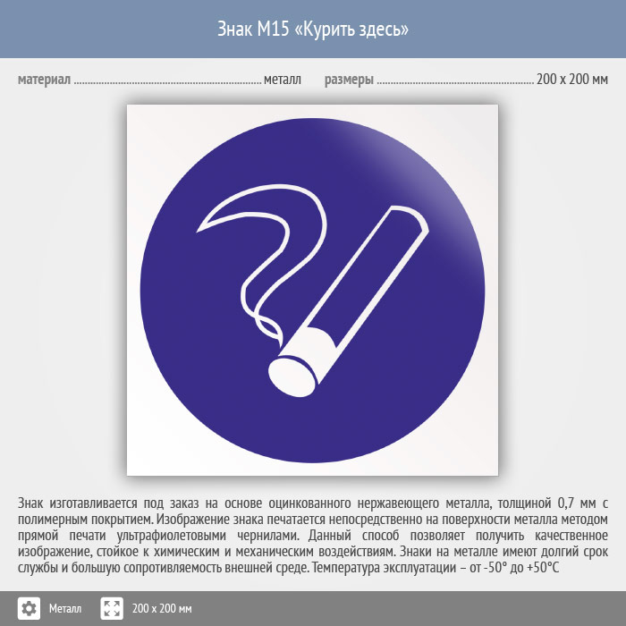Знак M15 «Курить здесь» (исключен) (металл, 200х200 мм) в Москве купить