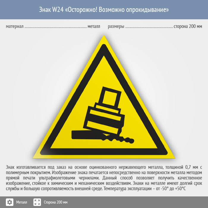 Знак W24 «Осторожно! возможно опрокидывание» (металл, сторона 200 мм) в Москве купить