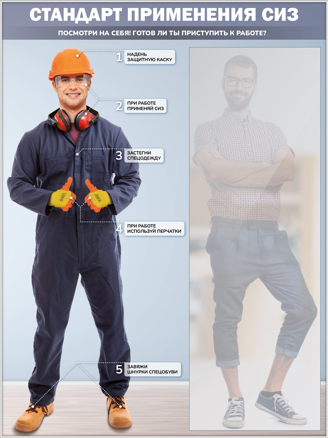 Стенд для демонстрации применения СИЗ с зеркалом, 1500х2000 мм в серебряном багете (СПС-01-С) в Москве купить