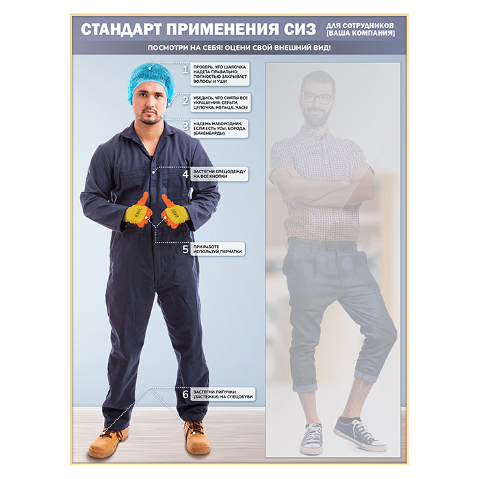 Стенд для демонстрации применения СИЗ с зеркалом, 1500х2000 мм в золотом багете (СПС-02-З) в Москве купить