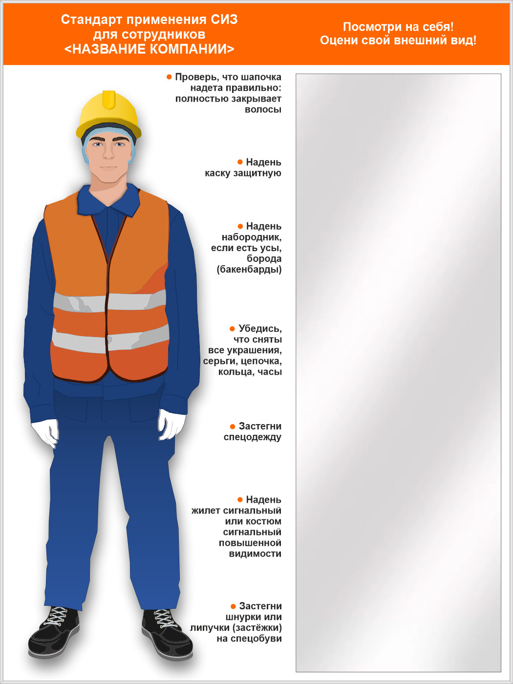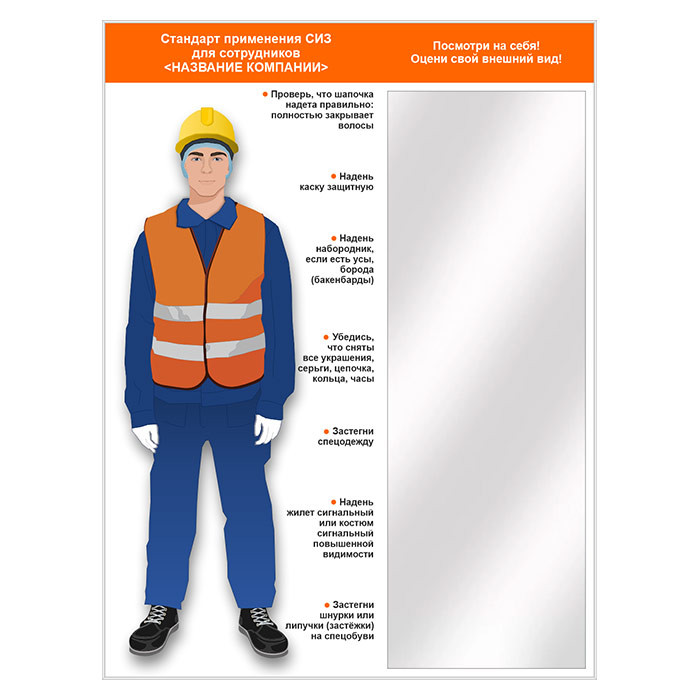 Стенд для демонстрации применения СИЗ с зеркалом, 1500х2000 мм в серебряном багете (СПС-02.2-С) в Москве купить