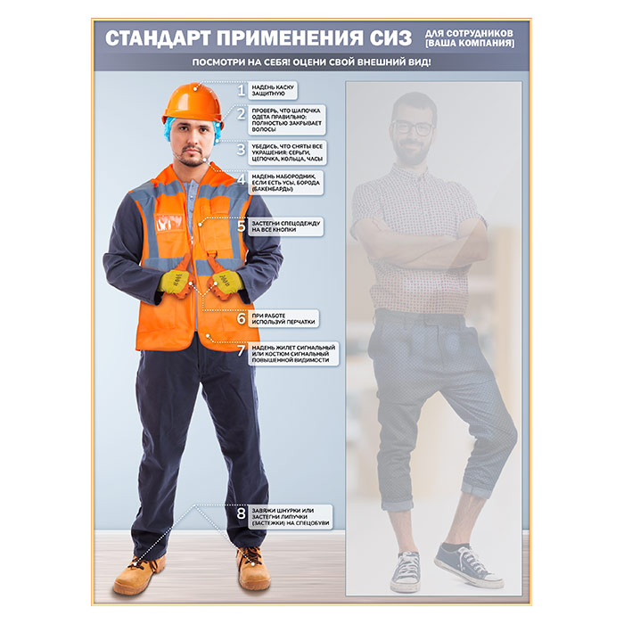 Стенд для демонстрации применения СИЗ с зеркалом, 1500х2000 мм в золотом багете (СПС-03-З) в Москве купить