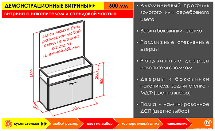 Витрина с накопителем и стендовой частью, 600 мм в Москве купить