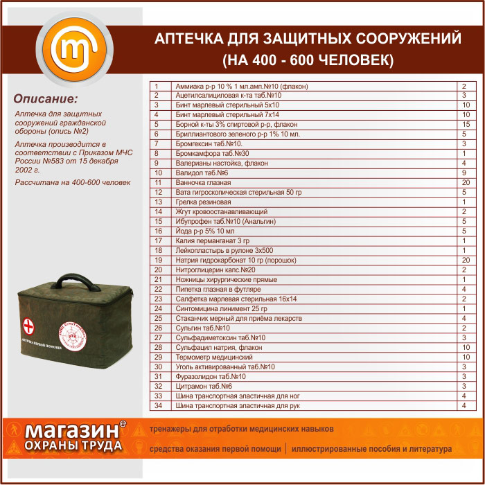 Аптечка для Защитных Сооружений (на 400 - 600 человек) - сумка в Москве купить