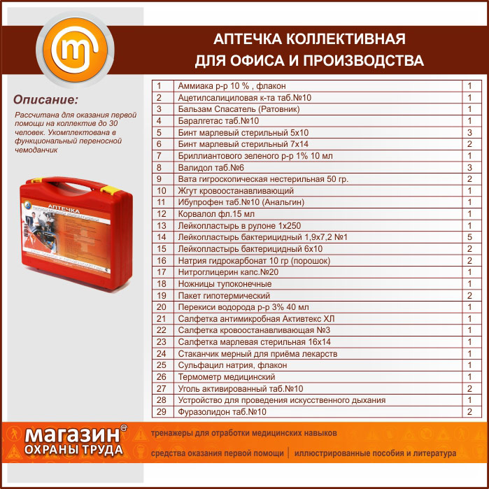 Аптечка КОЛЛЕКТИВНАЯ для офиса и производства (до 30 человек) - пластиковый чемодан в Москве купить