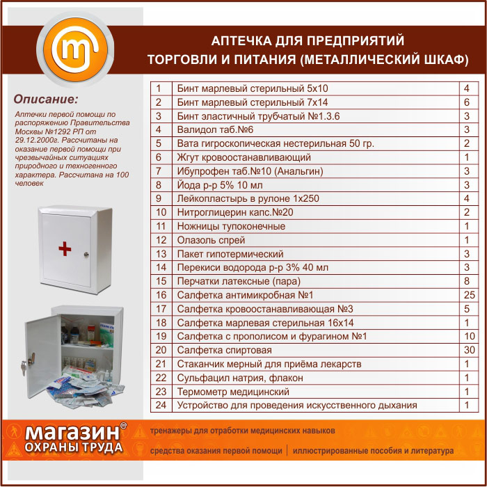 Аптечка для предприятий торговли и питания - (на 100 человек) - металлический шкаф в Москве купить