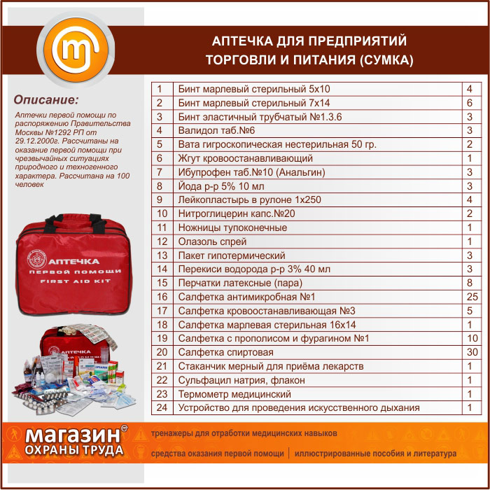 Аптечка для предприятий торговли и питания - (на 100 человек) - сумка в Москве купить
