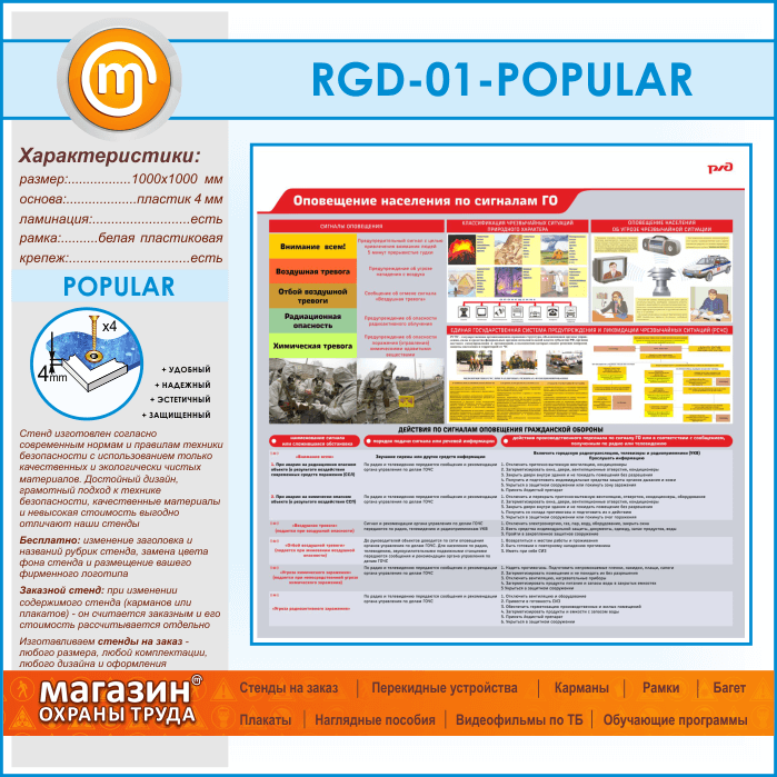 Стенд «Оповещение населения по сигналам ГО» (RGD-01-POPULAR)