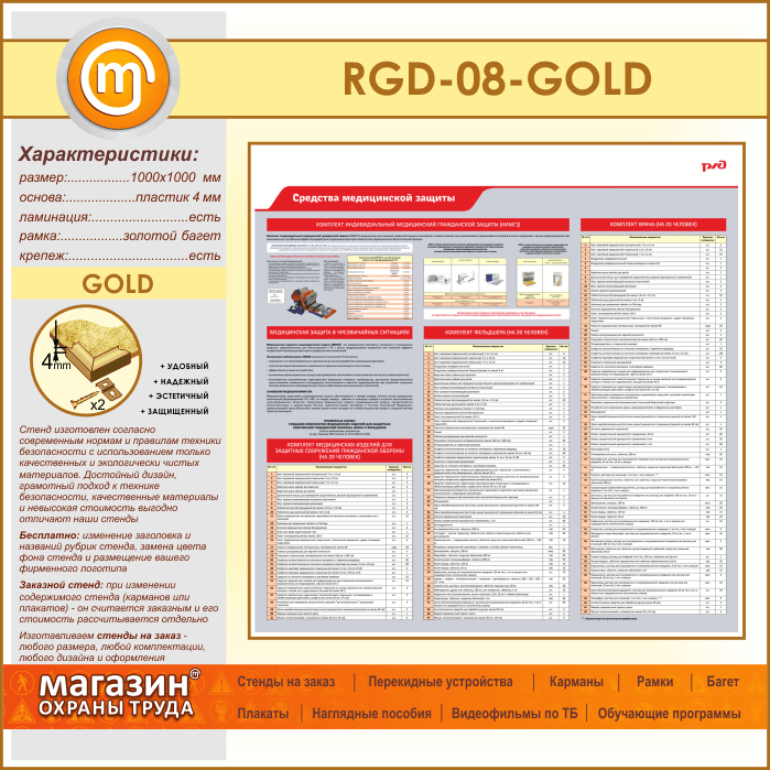Стенд «Средства медицинской защиты» (RGD-08-GOLD) в Москве купить