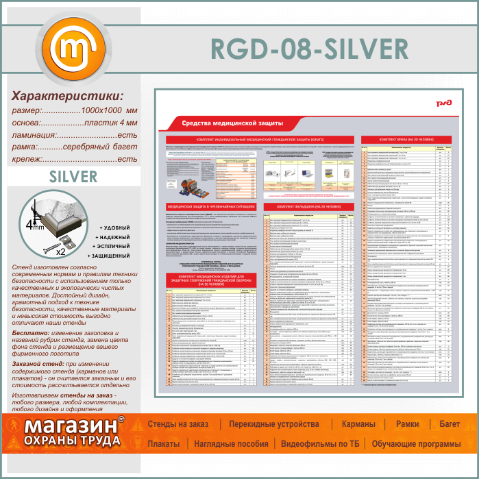 Стенд «Средства медицинской защиты» (RGD-08-SILVER) в Москве купить