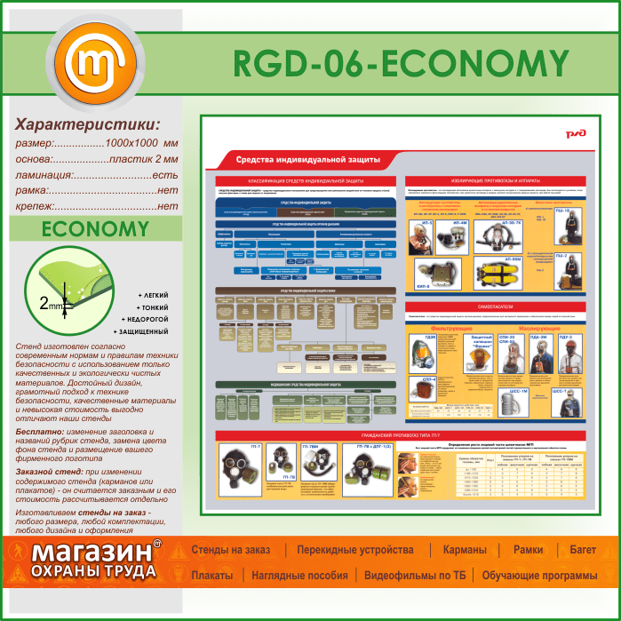 Стенд «Средства индивидуальной защиты» (RGD-06-ECONOMY) в Москве купить