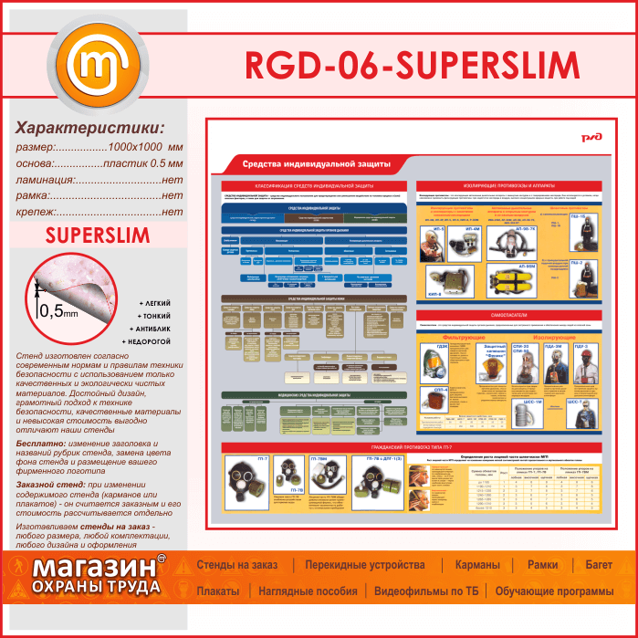 Стенд «Средства индивидуальной защиты» (RGD-06-SUPERSLIM) в Москве купить