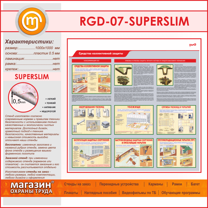 Стенд «Средства коллективной защиты» (RGD-07-SUPERSLIM) в Москве купить