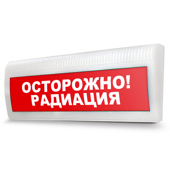 Световое табло «Осторожно! Радиация» чаще всего покупают в трех наиболее распространненных версиях: Молния ЛАЙТ, 12В и 220В РИП. Однако можно заказать надпись/знак и на других моделях световых оповещателей