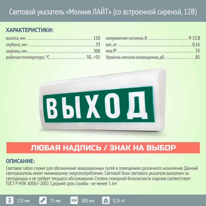 Световой указатель Молния ЛАЙТ (со встроенной сиреной, 12В) в Москве купить