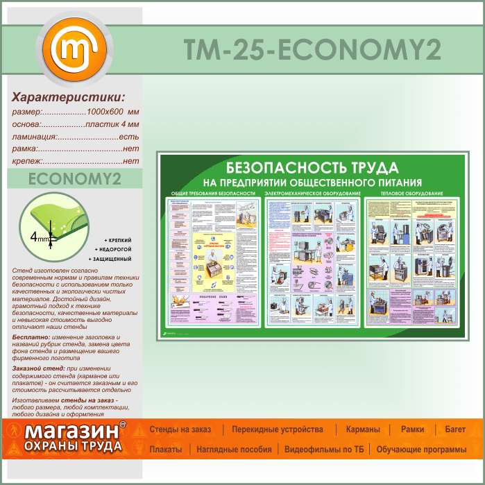 Стенд «Безопасность труда на предприятиях общественного питания» (TM-25-ECONOMY2) в Москве купить